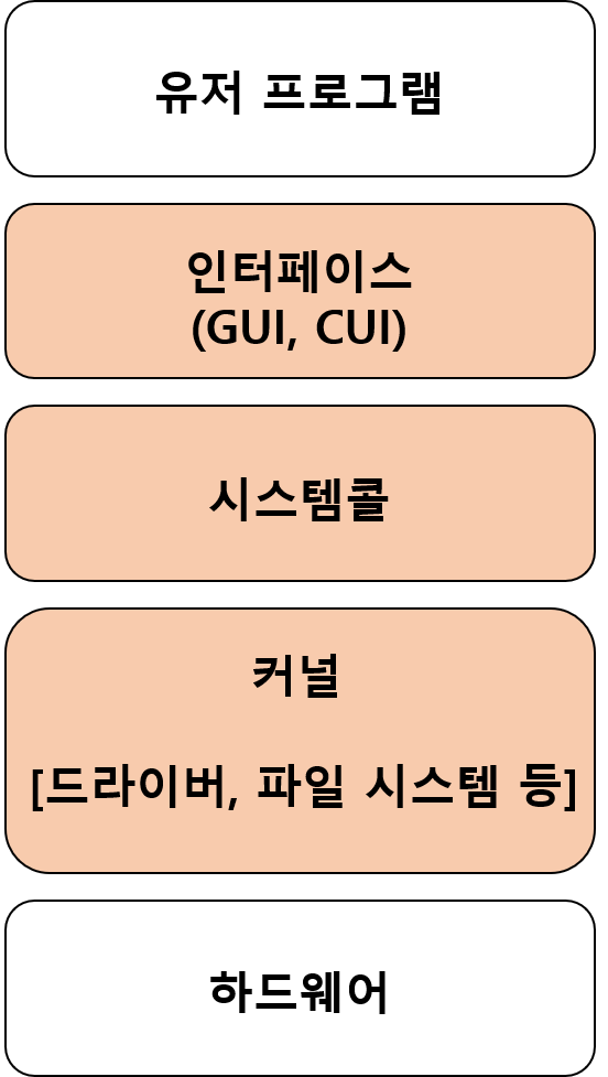여기서 인터페이스와 커널 사이에 시스템 콜이 존재하는 걸 알 수 있다.