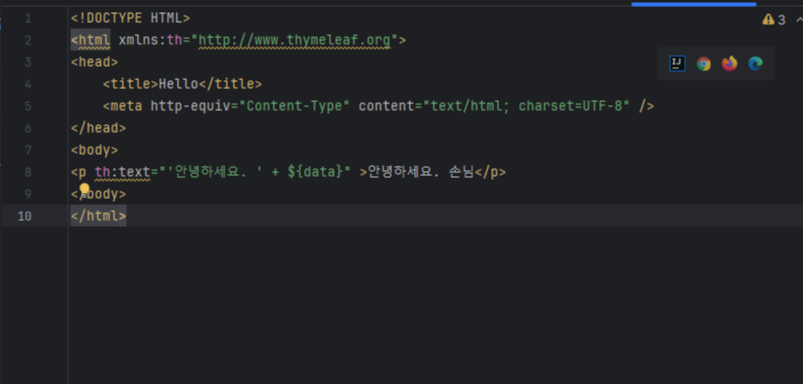 templates 폴더 안에 hello.html 파일을 생성했다.