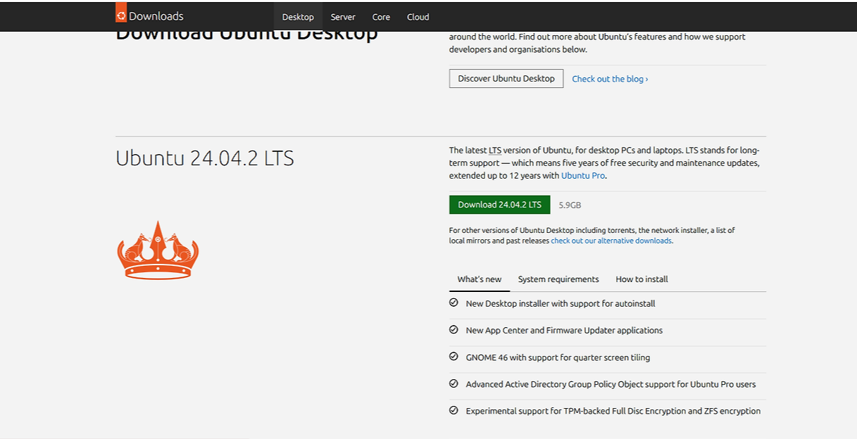 우분투 홈페이지에 들어가서 LTS 버전을 다운로드 해준다.