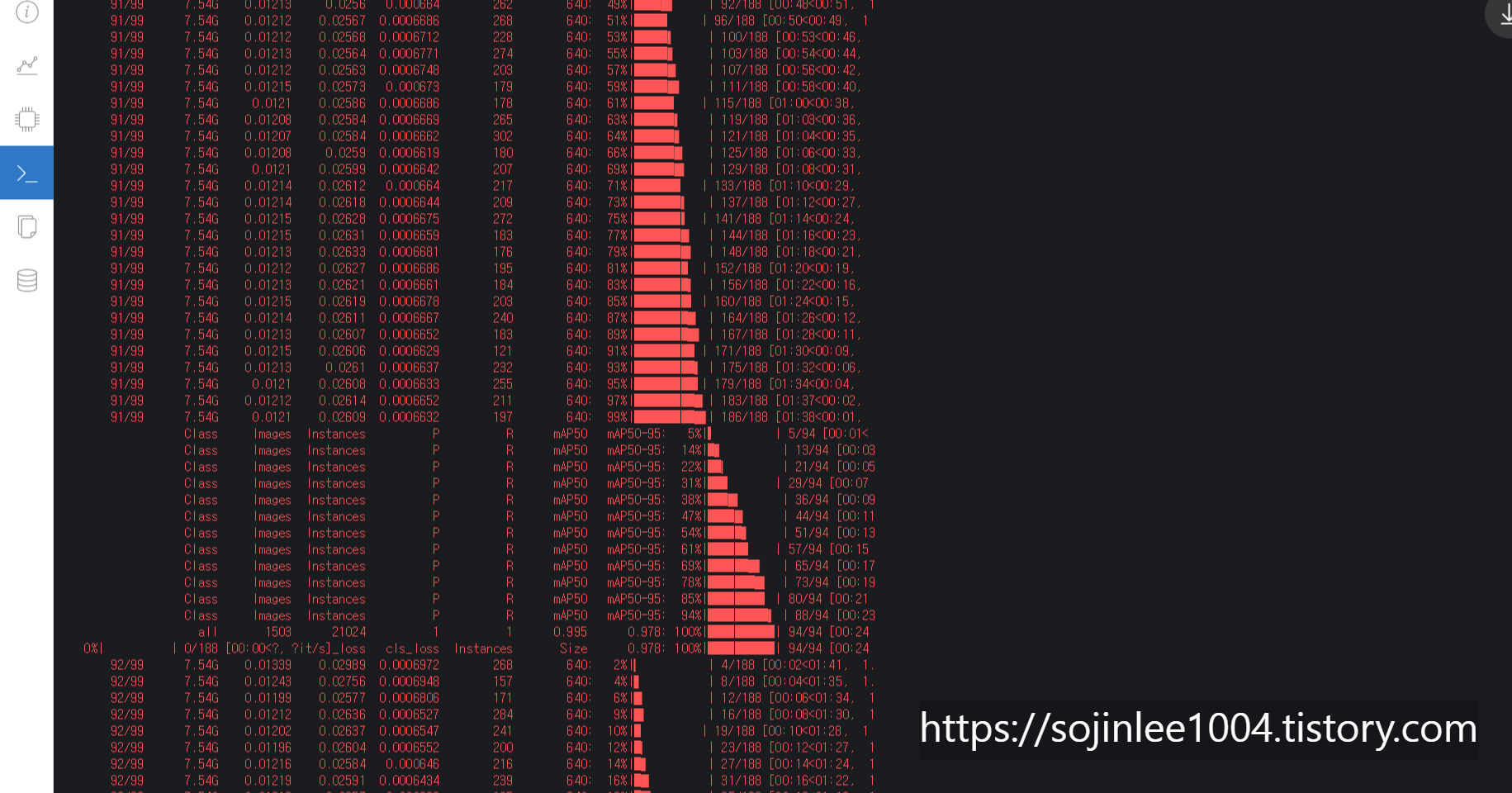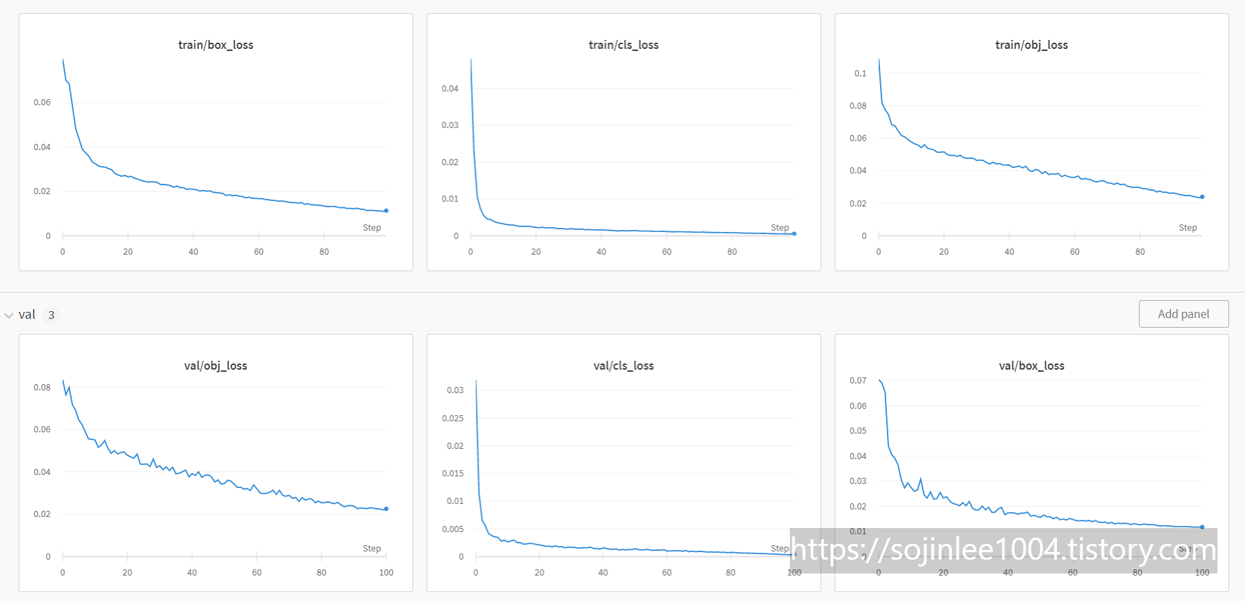 그리고 train, val는 여러가지 loss가 표시되어있다.