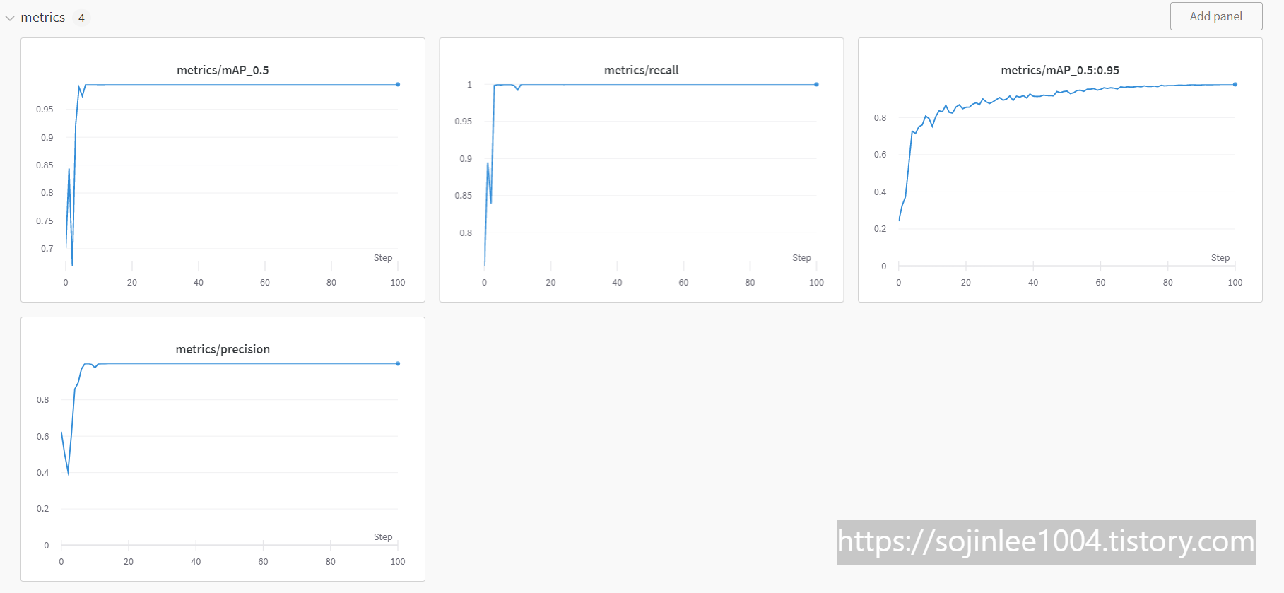 metrics 에는 mAp, recall, precision 그래프가 표시되어있다.