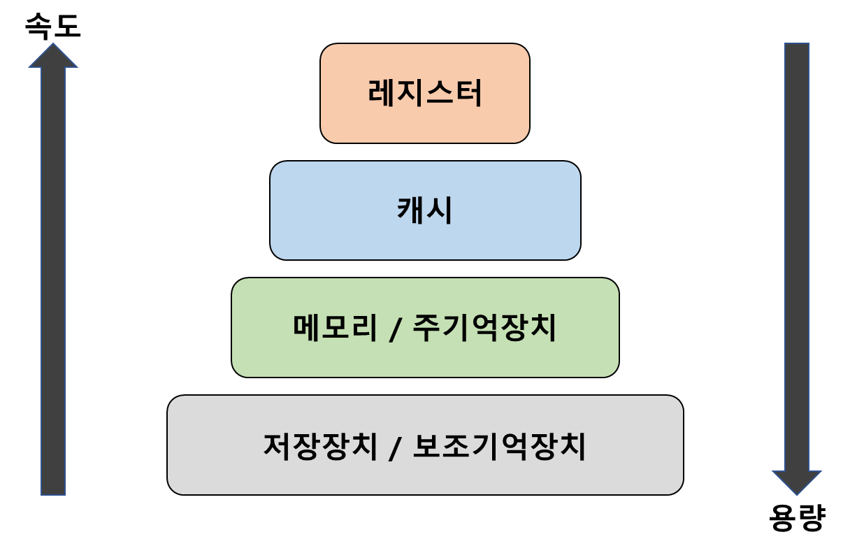 컴퓨터 시스템에서 메모리 계층은 다양한 종류의 기억장치를 계층적으로 구성하고 있다. 이를 통해 효율적인 데이터 접근을 가능하게 도와준다. 오늘은 이 메모리 계층에 대해 알아보자. 1️⃣ 메모리 계층메모리 계층은 어떻게 구성될까? 레지스터, 캐시, 주기억장치, 보조기억장치로 구성된다. 밑의 그림에서 보면 알 수 있듯이, 위로 갈수록 비싸지고 용량은 작아지며 속도는 빨라진다. 즉, 빠를수록 비싸고 적은 데이터를 저장할 수 있다는 것이 특징이다. 2️⃣ 메모리 계층이 존재하는 이유 메모리 계층이 존재하는 이유는 크게 3가지가 있다. 1) 빠른 접근과 처리 속도 증가 - 보통 사람들은 자주 쓰는 데이터는 또 다시 자주 사용한다. 그리고 자주 사용하지 않는 데이터는 계속 자주 사용하지 않는다. 따라서 자주 사용하..
